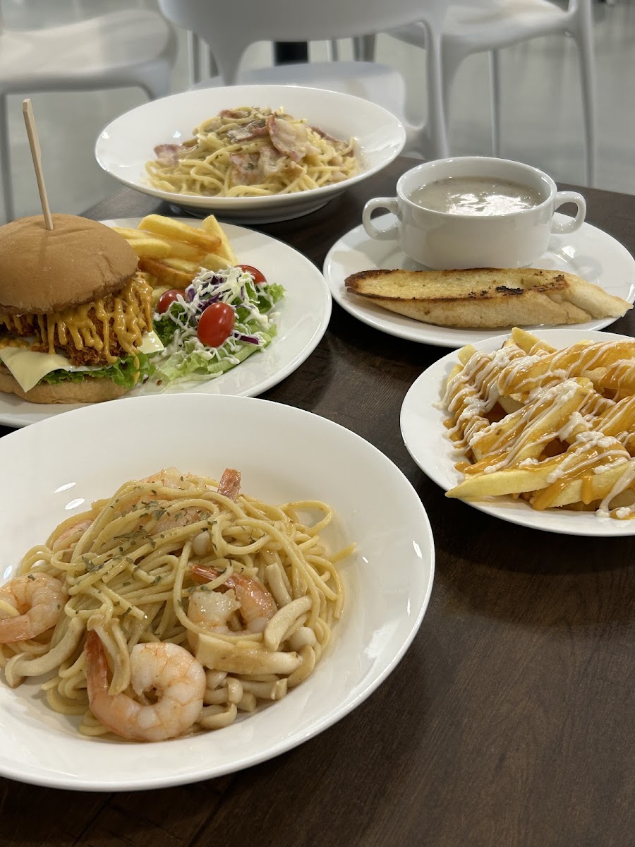 I ordered vegetarian carbonara spaghetti, the taste was great, it was flavourful. The sauce was highly concentrated. It's a mixture of cheese and milk. The price for the spaghetti was rm10.90. Pricing consider cheap. Their fries taste good too. The environment is not bad, suitable for students.